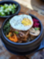Colourful rice bowl with Beef Bulgogi , Seasonal Veg, an Egg and a touch of our House Special Sauce.